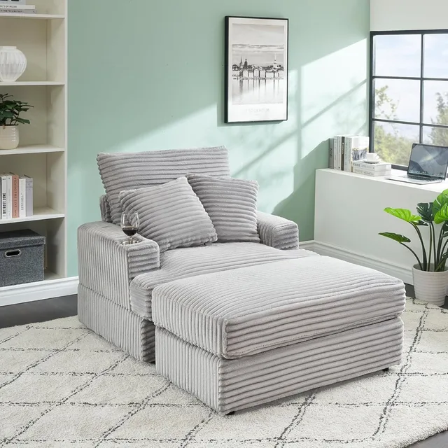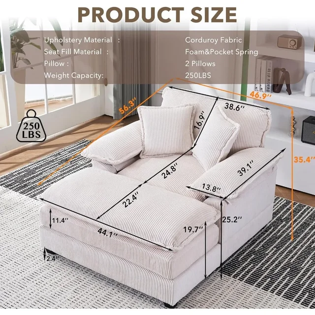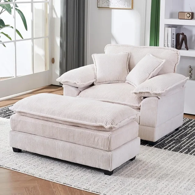 56.3” Oversized Chaise Lounge Indoor,Corduroy Single Sofa Chair with Ottoman, Plush Upholstered Deep Seat, Lazy Sleeper Sofa