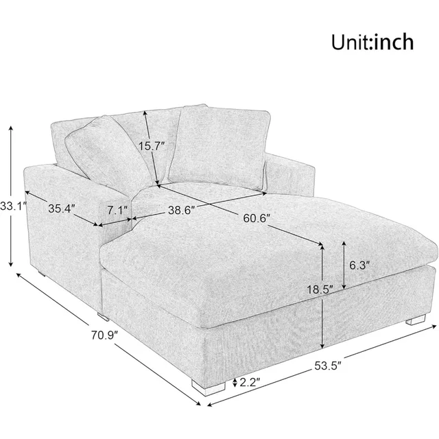 Chaise Lounge Chair, Oversized Chaise Lounge Sofa Upholstered Soft Short Plush Couch w/ 2 Throw Pillows, Easy to Install
