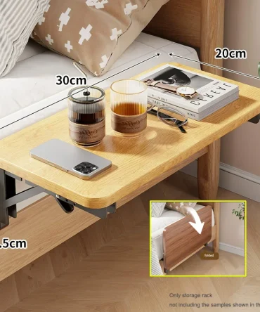 Foldable Bed Side Table Tray Organizer,Clip On Nightstand Bed Side Table Storage for Adult Kids,Bedside Shelf Desk Organizer