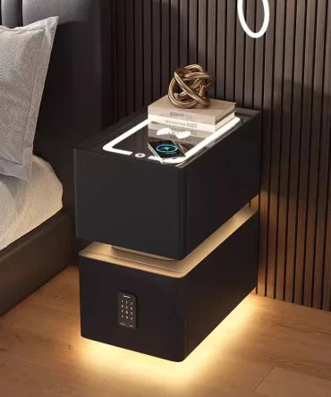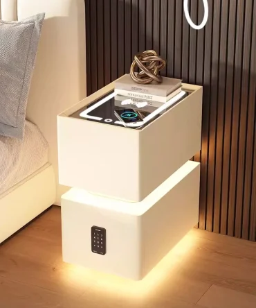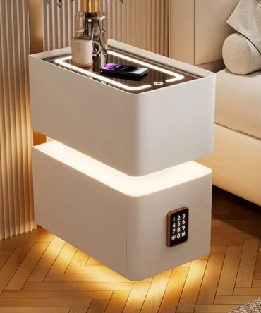 Creative Intelligent Bedside Table with Wireless Charging Modern Style Storage Cabinet Bedroom Nightstand with Sensor Light 25cm