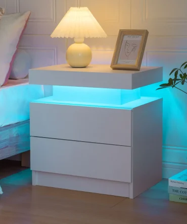 Cubehom LED Nightstands with 2 Drawers, End Table with RGB LED Lights for Bedroom Living Room, White Bedside Table