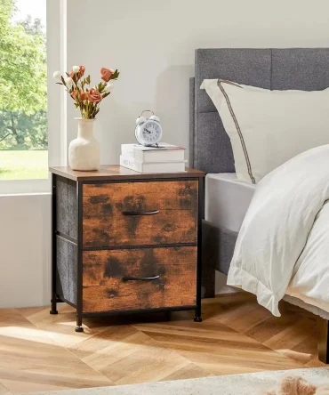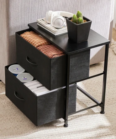 JHK Nightstand Bedside Coffee Sofa Tea Table Storage Closet Chest Clothes Display For Bedroom 2 Fabric Drawers Cabinet Furniture
