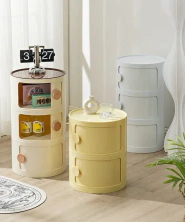 Household Nordic Bedside Table with Handle Portable Creative Round Storage Cabinet Bedroom Multi-Layer Modern Simple Plastic Sid