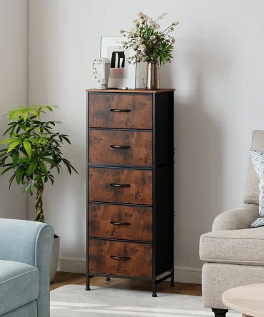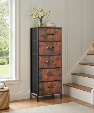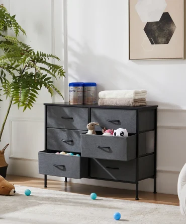 JHK 48IN Dresser For Bedroom With 5 Fabric Drawers Nightstand Wardrobe Steel Frame Closet For Clothes Storage Cabinet Furniture