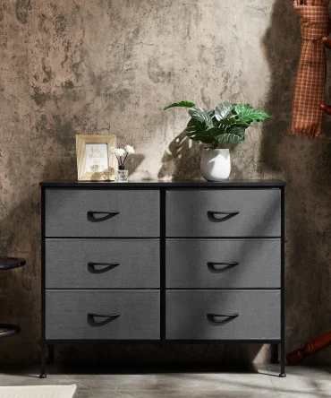 JHK 6 Fabric Drawers Nightstand For Bedroom Bedside Sofa Table With Storage Closet Chest Clothes Display Cabinet Furniture