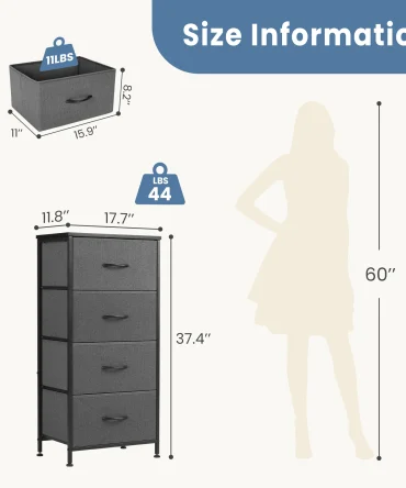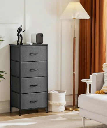 JHK Dresser For Bedroom With 4 Fabric Drawers Nightstand Wardrobe Steel Frame Closet For Clothes Storage Cabinet Of Furniture