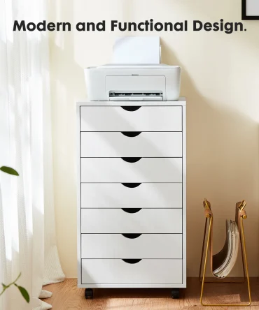 JHK 7 Drawer Chest Dressers Nightstand Storage Cabinet Wooden File Office Mobile Cabinet Wheels Living Room Organizer Rolling