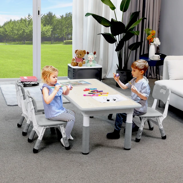 AOOU 47.2‘’ Kid Table and 4 Chairs Set, Height Adjustable Toddler Study Table&Chair Set for Age 2-10, Multi-Activity Art Table
