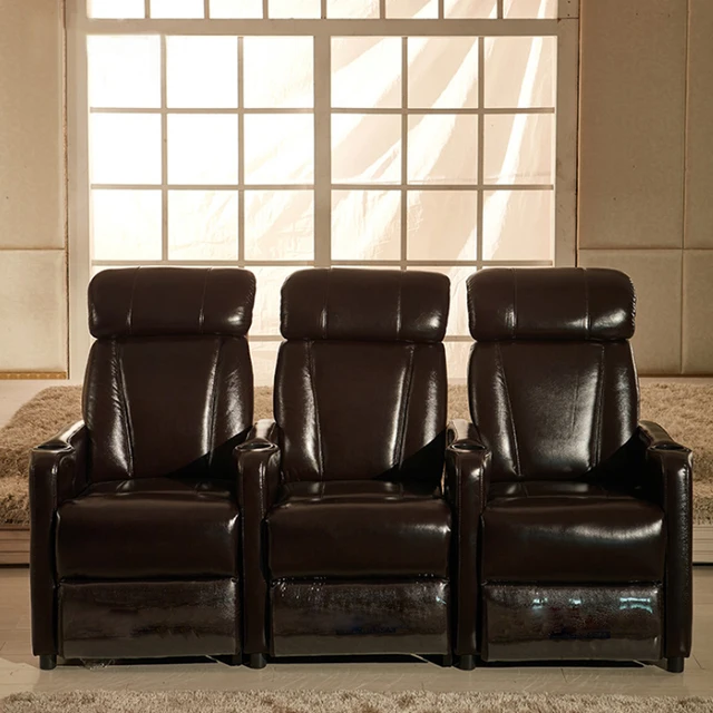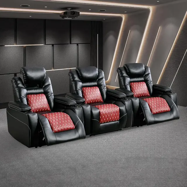 Project 3 Seat Adjustable USB Charger Leather Recliner Sofa Home Theater Furniture With Blu-etooth For VIP Movie Room