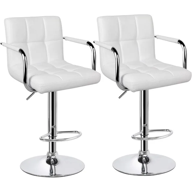 Tall Bar Stools Set of 2 Modern Square PU Leather Adjustable BarStools Counter Height Stools with Arms