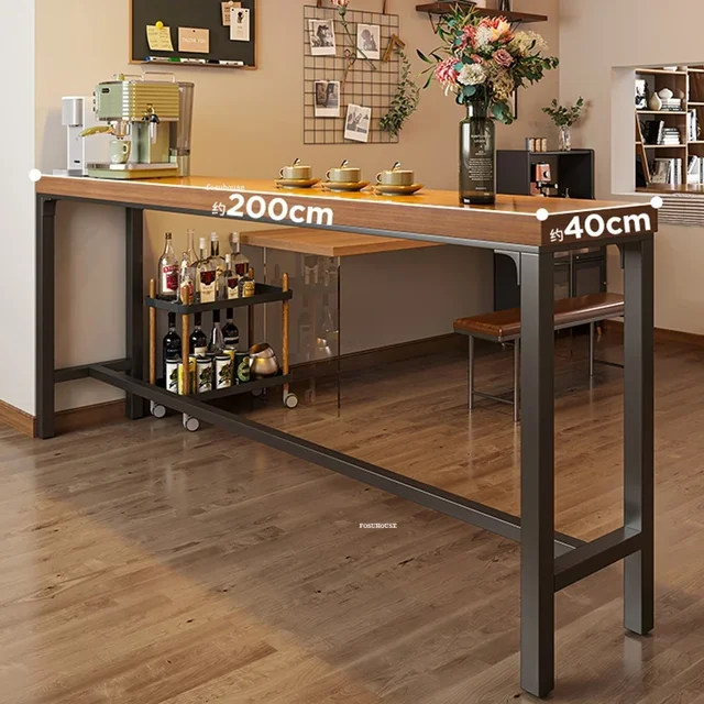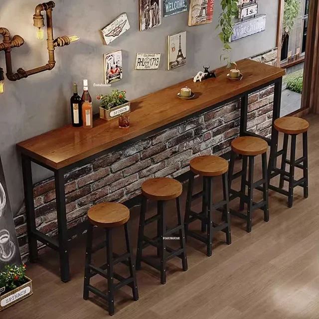 Leisure Iron Art Bar Tables Retro Home Wooden High Table Balcony The Wall Long Table Cafe Table and Chair Set Kitchen Furniture