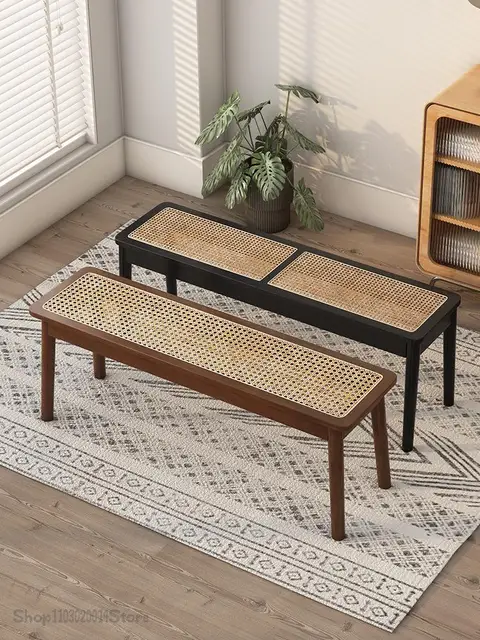 Rattan Bench Chandigarh Chair Household Solid Wood Dining Chair Japanese Style Log Long Bench Bed End Stool Shoe Changing Stool