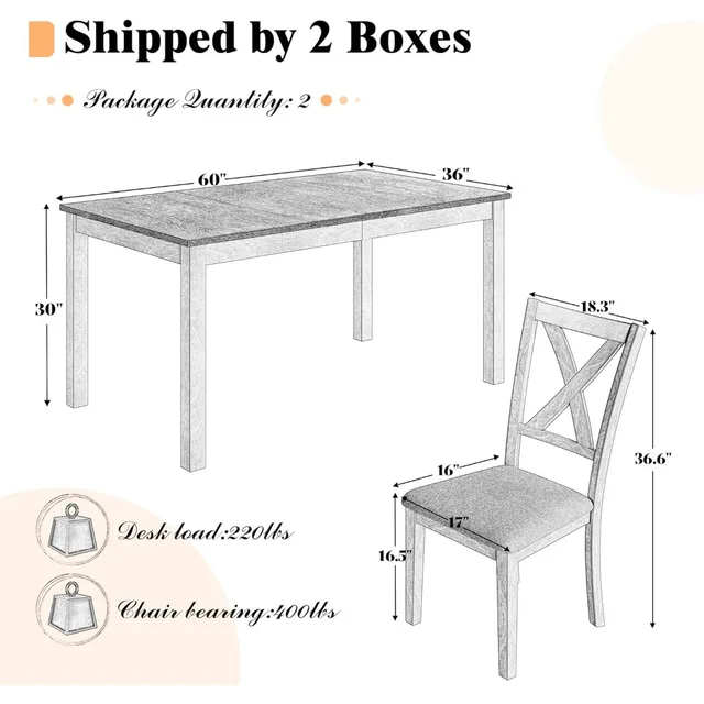 6-Piece Dining Set, Mid-Century Modern Wooden Table & Upholstered Chair Set for Home, Dining Room W/ 4 Chairs, Bench Seat