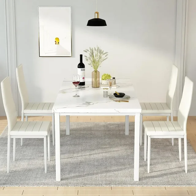 Dining Table Set for 4 Marble Kitchen Table and Chairs for 4, Comfortable PU Leather Chairs,Dining RoomTable Set for Small Space