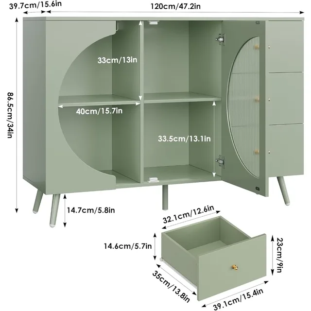 Coffee Bar Cabinet with Fluted Glass Door, Modern Cream Style Buffets & Sideboards with Wine Glass Rack