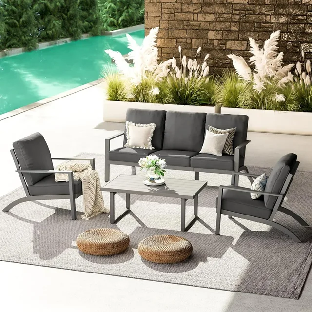 Aluminum Patio Furniture Set Metal Outdoor Furniture Aluminum Patio Set, Modern Patio Furnitures Conversation Sets High Back