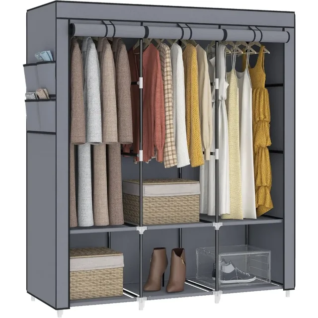 67 in Portable Closet Wardrobe for Hanging Clothes, Wardrobe Closet , 4 Hanging Rods and Side Pockets, 8 Storage Shelves