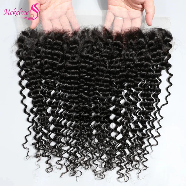 Deep Wave 13×4 Lace Human Hair Frontal Transparent Swiss Lace Natural Color 150% Density Unprocessed Brazilian Virgin Hair 20In