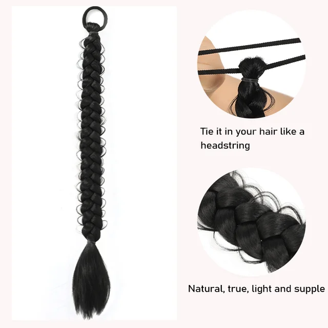 24 Inch Synthetic Long Braided Ponytail Hair Extensions For Women High Temperature Fiber Hair Accessories