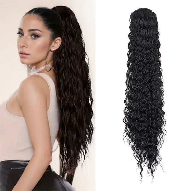 22Inch Synthetic Kinky Curly Clip in Ponytail Extension High Temperature Drawstring Deep Wavy Ponytail Hairpiece for Women