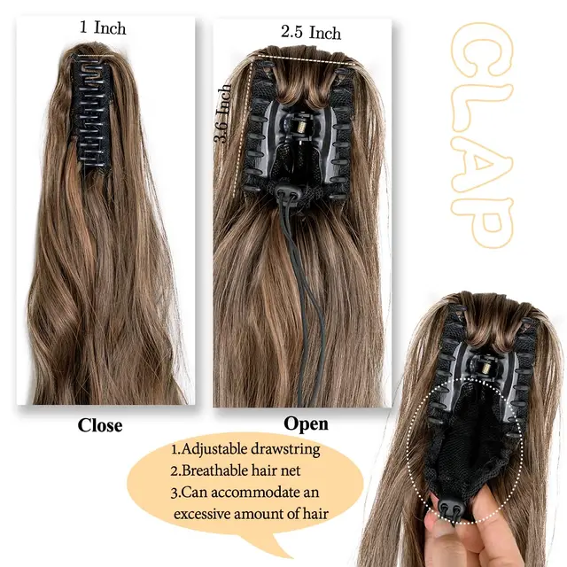 32”Synthetic Claw Ponytail Extension Straight Hair Water Wave Clip Hair Extensions Soft Natural Multi-Color Optio