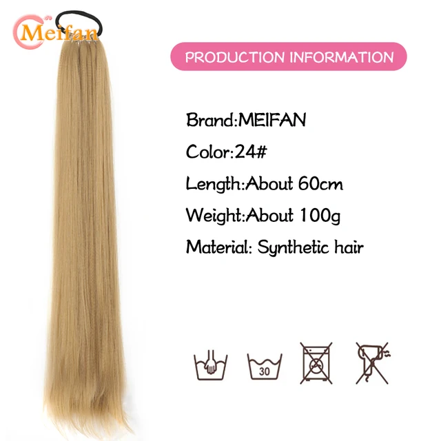 MEIFAN 24 Inch Synthetic Ponytail Extensions Black Natural Braided Pony Tail Hairpiece Long Straight Rubber Band Hair For Women