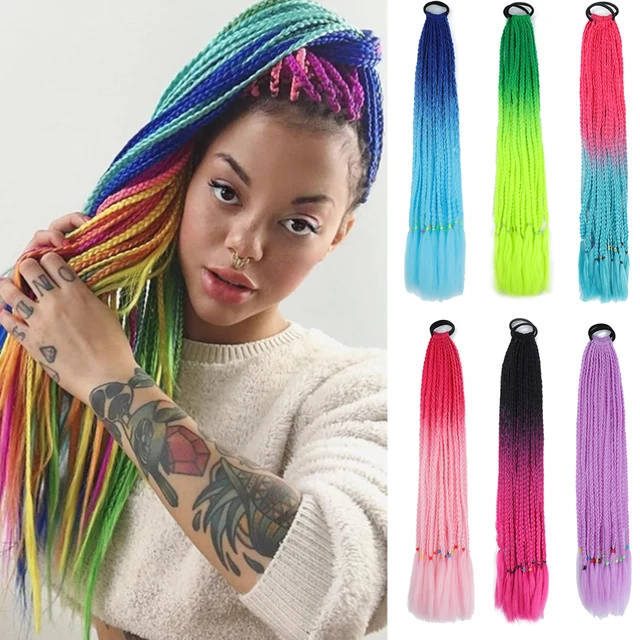 Colorful Braids, Synthetic Wig Extensions, Rubber Bands, Rainbow Braids, Ponytail Hair Accessories, WOMEN’S Party Cosplay Fes