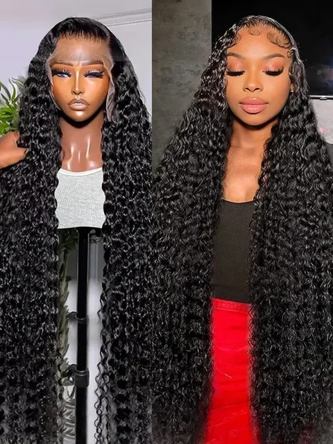 13×6 HD Deep Wave Lace Frontal Wig Black 13×4 Water Wave Curly Human Hair 5×5 Glueless Lace Front Wig 30 40 Inch Closure Wear Go