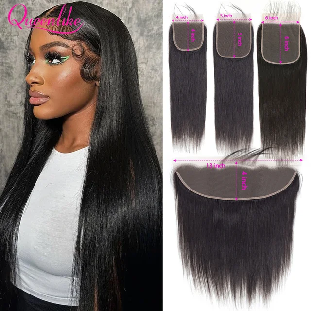 13×4 Lace Frontal Closure 4×4/5×5/6×6 Straight Lace Closure Human Hair Transparent Ear to Ear Frontal Extensions for Women