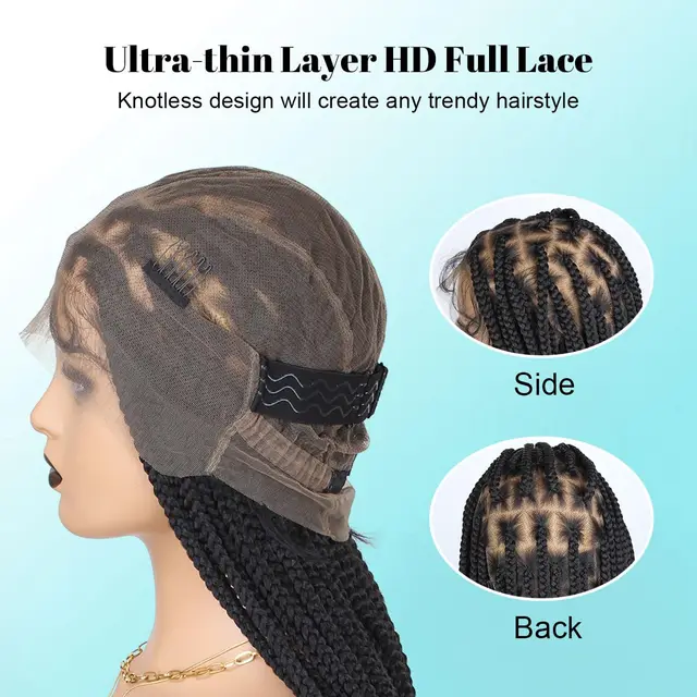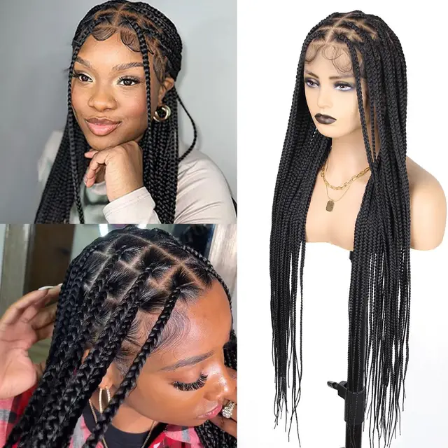 Synthetic Large Box Braided Wigs Jumbo Knotless Full Lace Front Wigs For Black Women Jumbo Tribal Braids Faux Locs Cornrows Wig