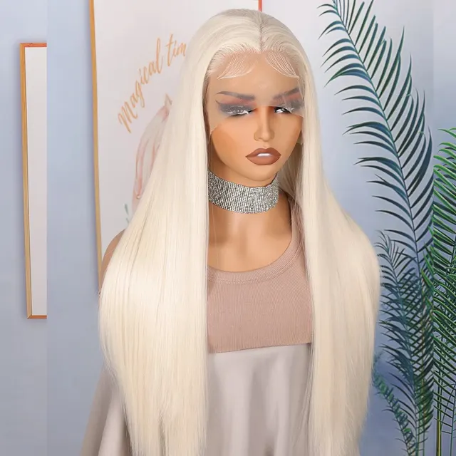 Soft Preplucked Ash Blonde White 26Inch 180Density Straight Lace Front Wig Synthetic With Baby Hair Glueless Daily Wear Wigs