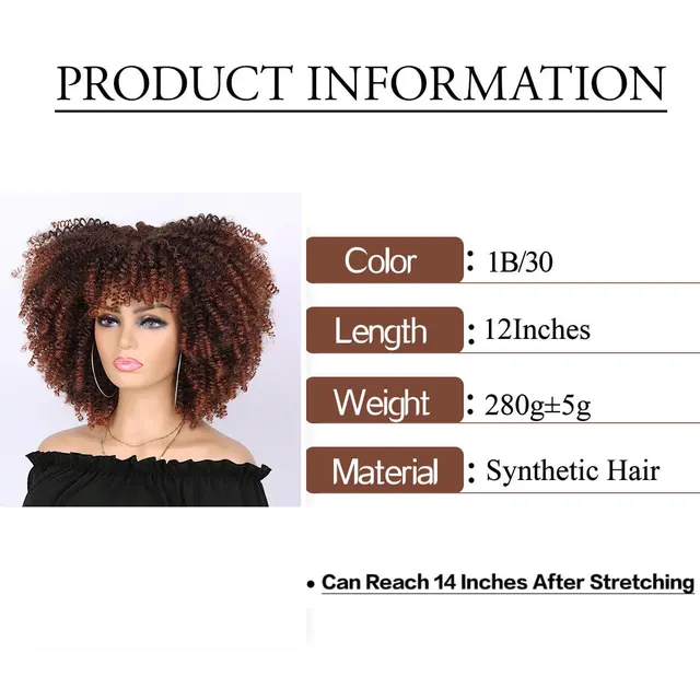 Synthetic Short Afro Kinky Curly Wig With Bangs For Black Women High Temperature Daily Party Headgear with Clips Cosplay