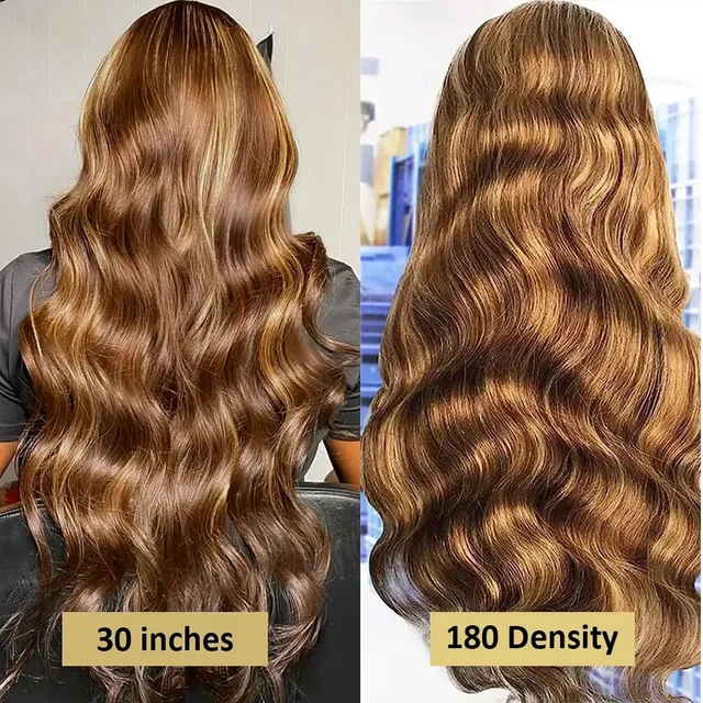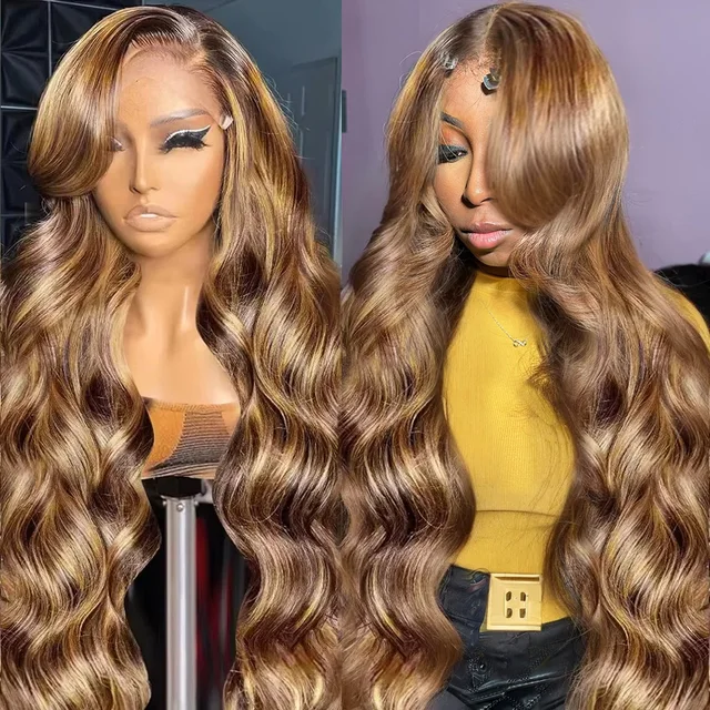13×4 HD Highlight Ombre Body Wave Wigs Human Hair P4/27 Blonde Brown Wig13x6 Lace Frontal Wig Colored Human Hair 200% For Women