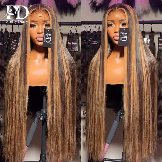 13×4 13×6 HD Highlight Lace Frontal Wigs For Women Honey Blonde Brazilian Bleached Ombre Straight Lace Front Wigs Human Hair