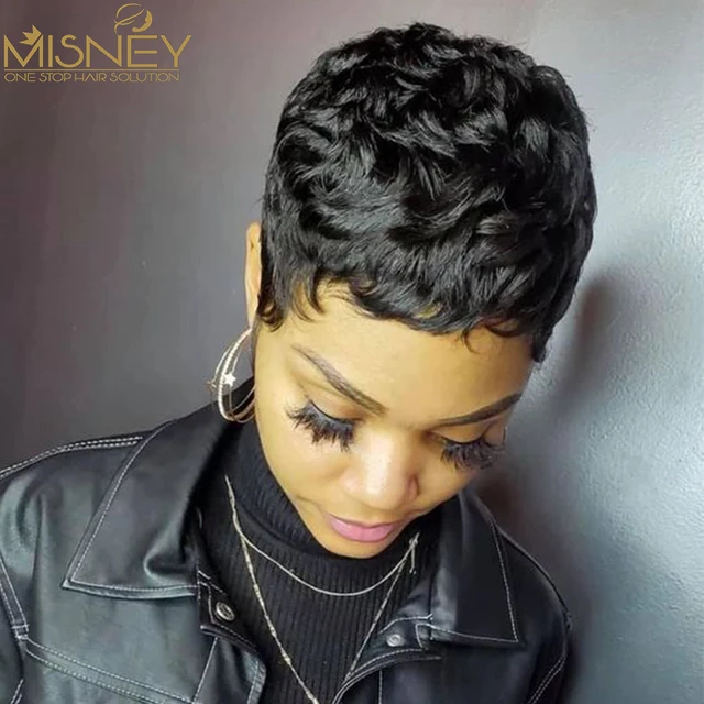 Short Bob Straight Human Hair Wigs Natural Color Brazilian Remy Hair Pixie Cut Wig Cheap Human Hair Wig For Black Women Misney