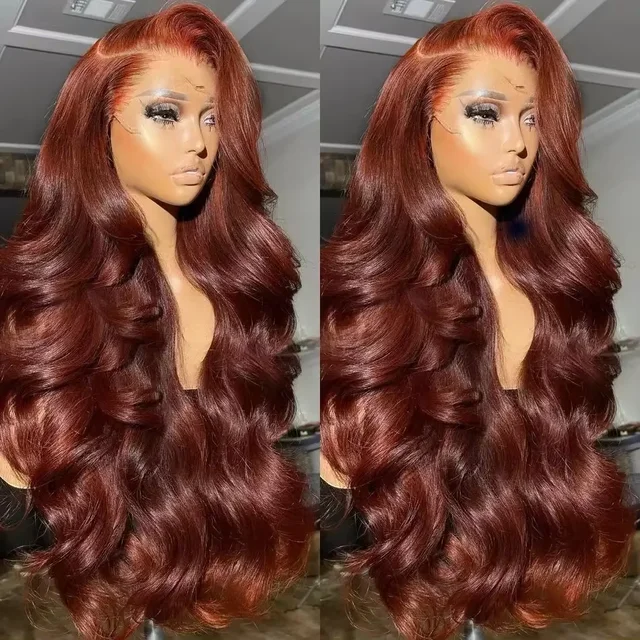 30 32 Inch Brazilian Reddish Brown 13×4 13×6 HD Lace Front Wigs Human Hair Body Wave 200% Colored Lace Frontal Wig For Women