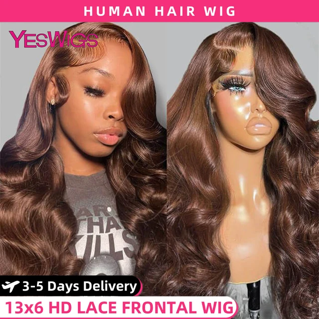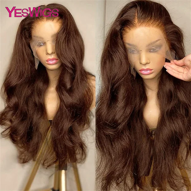 HD 13×6 Chocolate Brown Body Wave Lace Front Wig 13×4 360 Lace Frontal Wig Human Hair Pre Plucked 100% Colored Human Hair Wigs