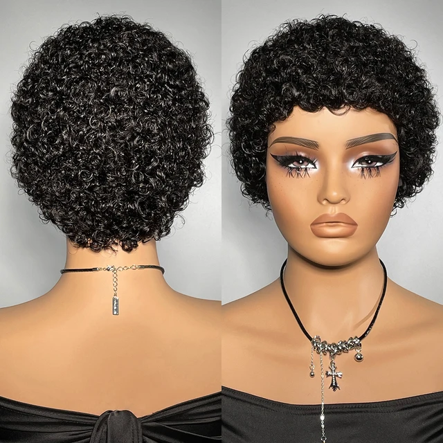 Short Kinky Curly Wigs Human Hair Pixie Cut Brazilian Human Hair For Women Natural Black Curly Human Hair Wigs Full Machine Made