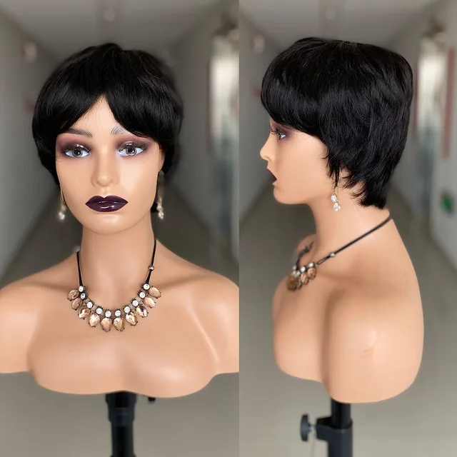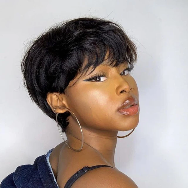 Short Pixie Cut Wig Human Hair For Black Women Machine Made Wigs With Bangs Short Wig Human Hair Wigs