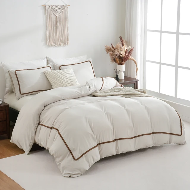 3PCS White And Khaki Duvet Cover Set Ball Comforter Cover Geometric Line Bed set soft lightweight Down Bedding Set All season
