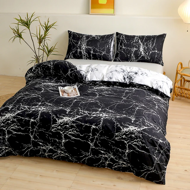 2/3 Piece Black Marble Pattern Sanding Bedding Set, Duvet Cover+Pillowase,Bedroom Bed Set,king Queen Double(Excluding filler)