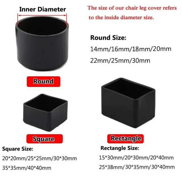 Square Silicone Chair Leg Caps Non-slips Table Foot Dust Cover Socks Floor Protector Pads Pipe Plugs Furniture Leveling Feet