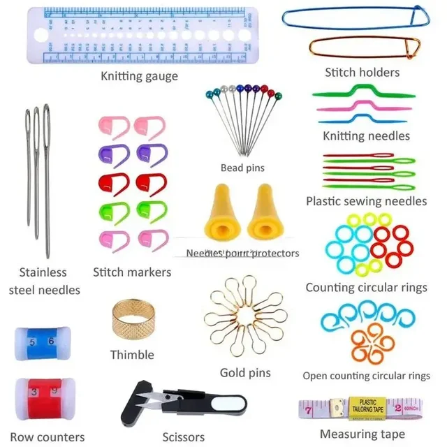 Sweater Needle Knitting Tool Set with 22 Metal Crochet Hooks Including 100 DIY Accessories Set Portable Storage Bag 1 Set