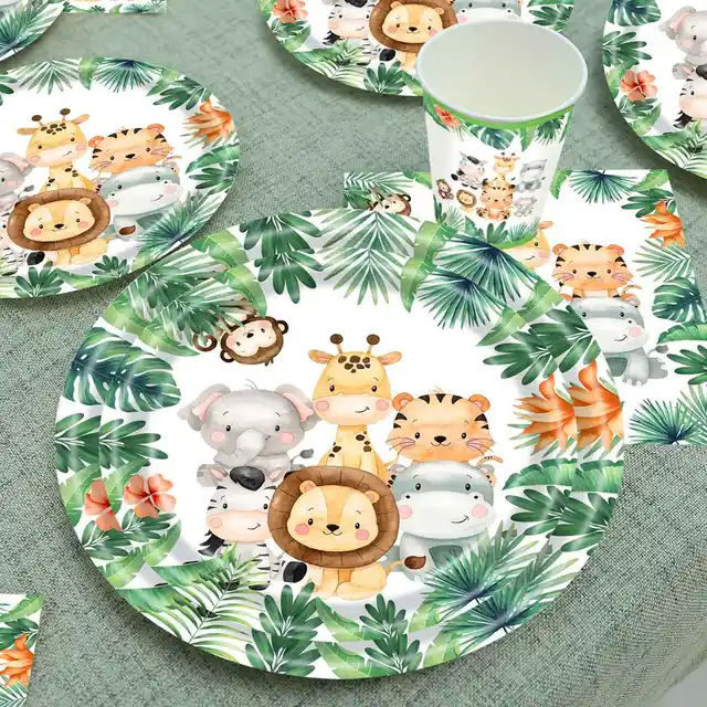 Jungle Animals Disposable Party Tableware Tablecloth Paper Plate Cup Wild One Birthday Party Decoration Kid Baby Shower Supplies