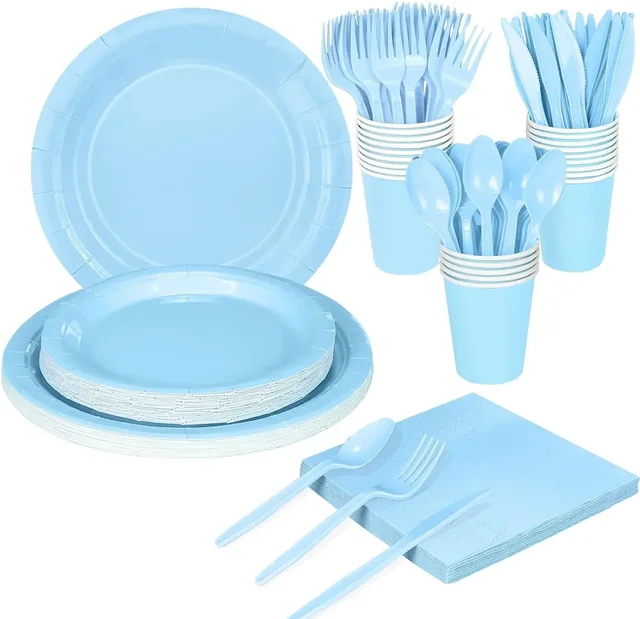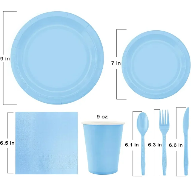Solid Light Blue Theme Birthday Super Girls Decorations Party Disposable Tableware Paper Napkins Cups Plates Tablecloths Straws