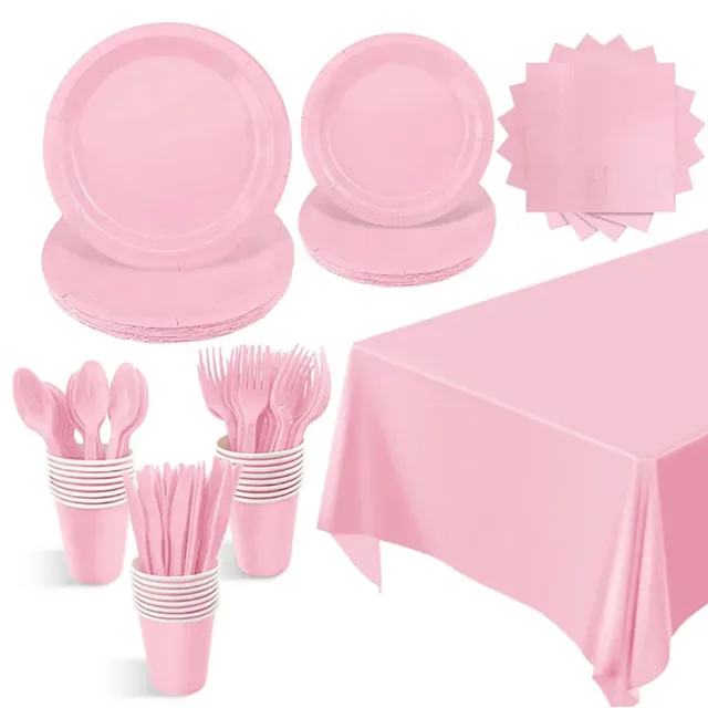 Solid Pink Theme Birthday Super Girls Decorations Party Disposable Tableware Paper Napkins Cups Plates Tablecloths Straw