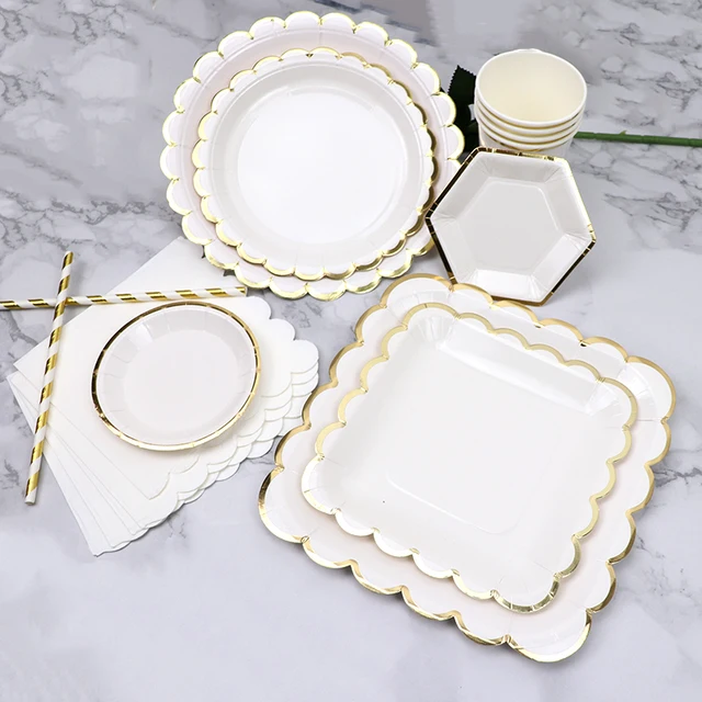 White Disposable Tableware Set Party Gold Paper Plate Wedding Necessitie Birthday Party Baby Shower Decorations Wedding Supplies