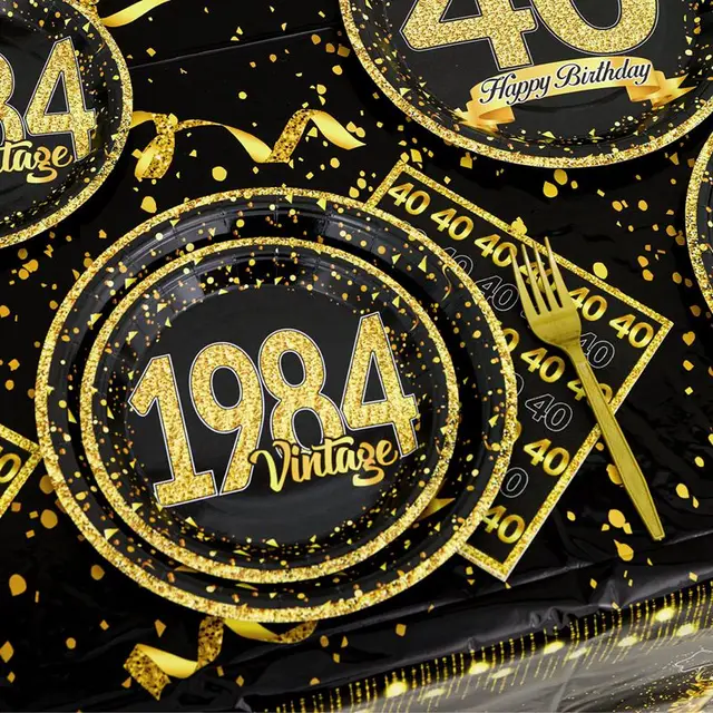 40th Birthday Party Black Gold Tableware Happy 40 Birthday Party Decorations Adults Parents Tablecloth Paper Plates Cups Napkin