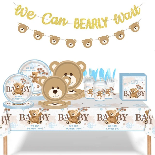 Cartoon Bear Disposable Tableware We Can Bearly Wait Baby Bear Plates Napkin Bear Theme Kids Birthday Party Babyshower Decor