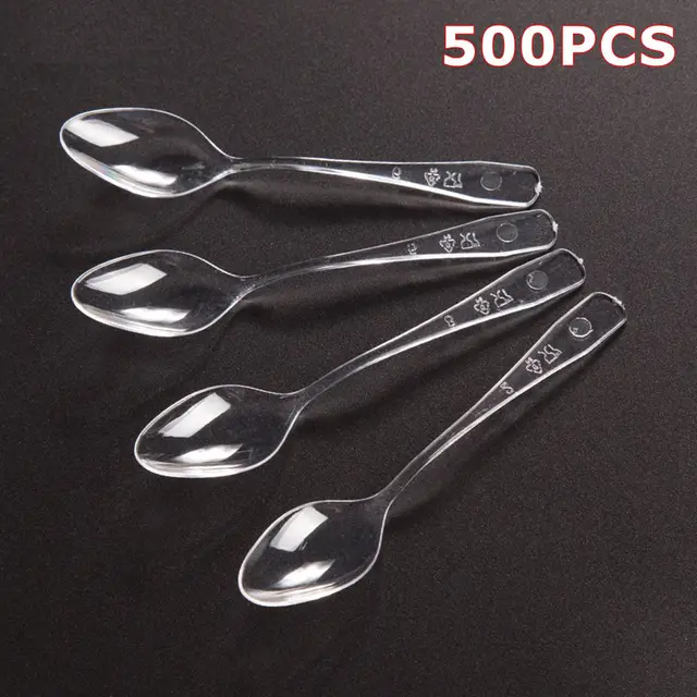 500pcs/100pcs Disposable Dessert Scoop Sundae Ice Cream Trial Scoops Birthdays Cakes Transparent Spoons Tools Accessories